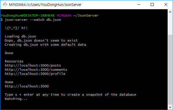 db.json을 DB로 삼아 서버를 실행시킨다는 의미로