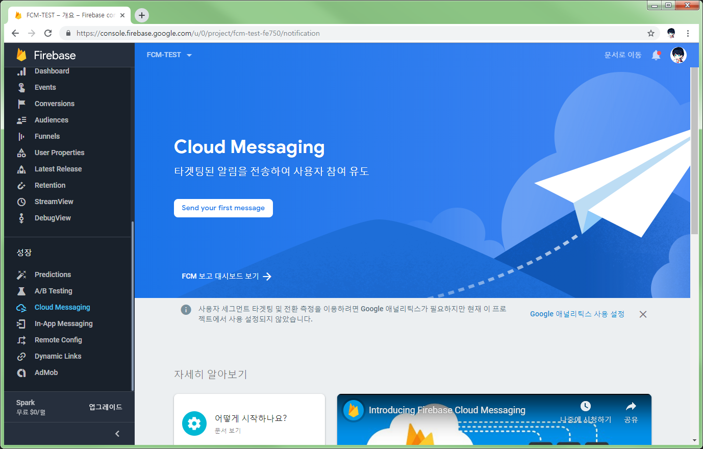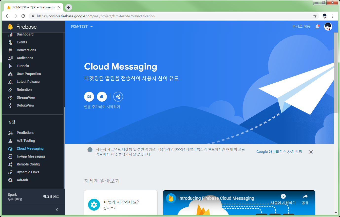 저희의 목적은 FCM이니 애널리틱스는 나중에