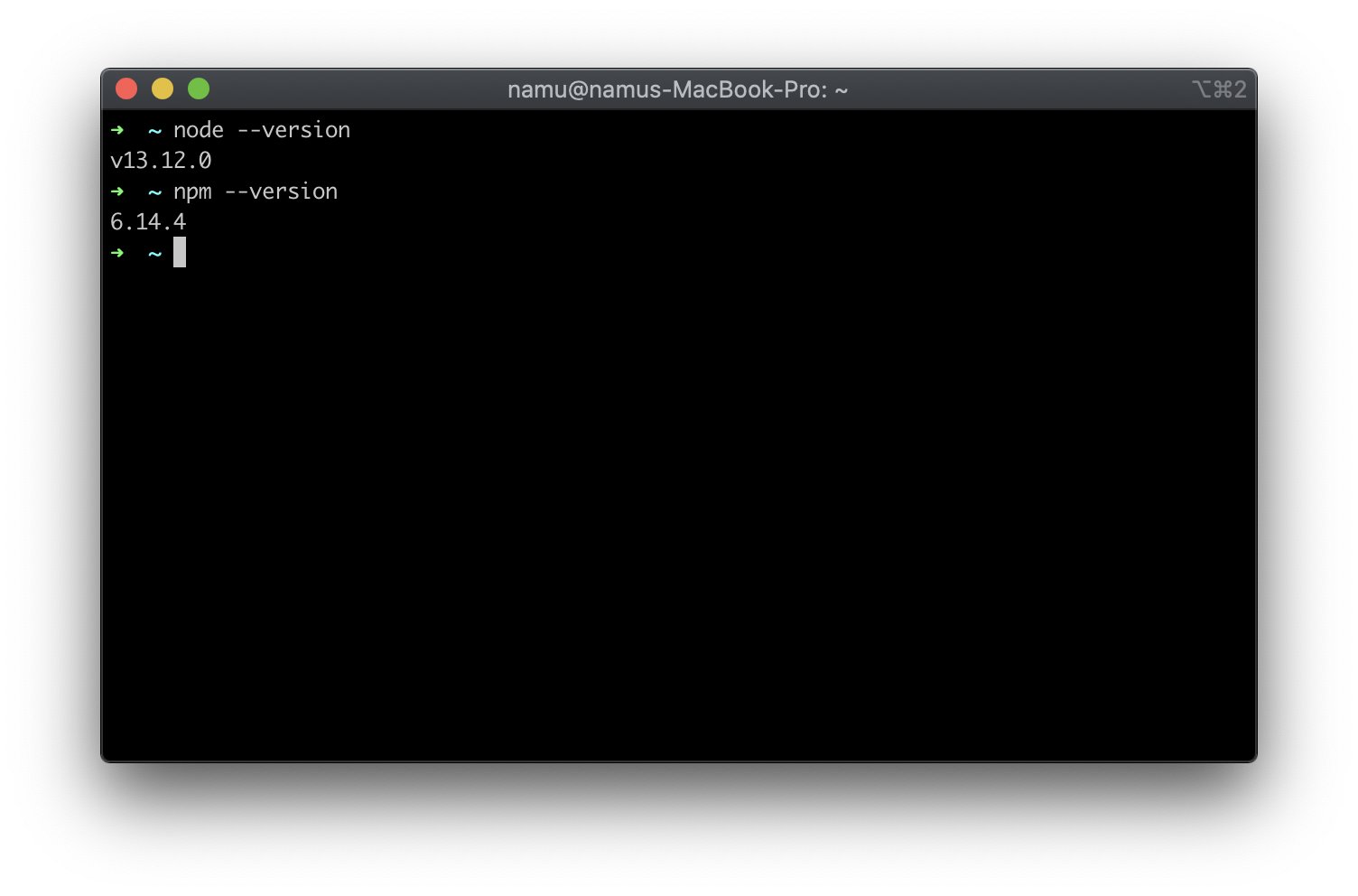 위 두 명령어를 이용하여 node 와 npm 설치가 정상적으로 되어 있는지 확인을 해주도록 합니다.