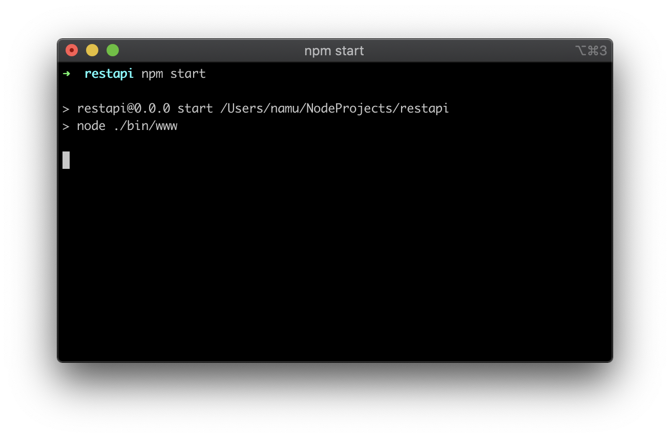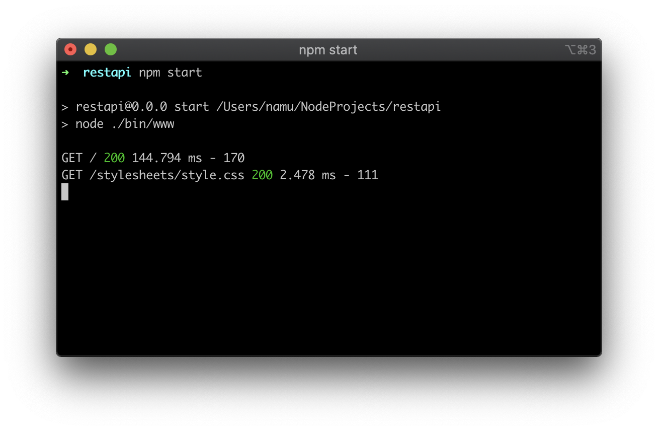 그 다음은 express를 실행하여 서버를 켜보도록 하겠습니다. `npm start`