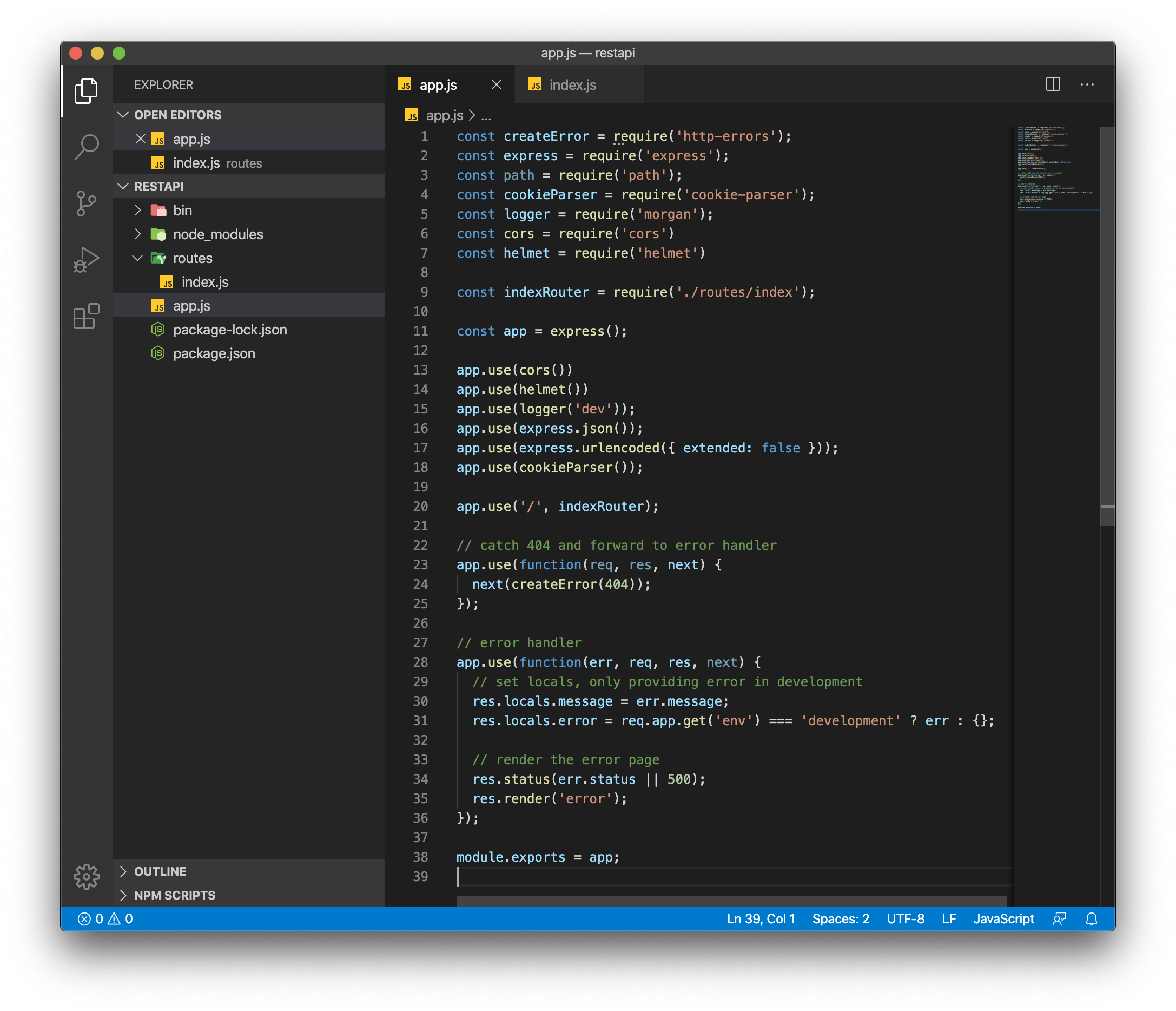 앞서 설치하였던 cors와 helmet를 등록 해주도록 합시다.