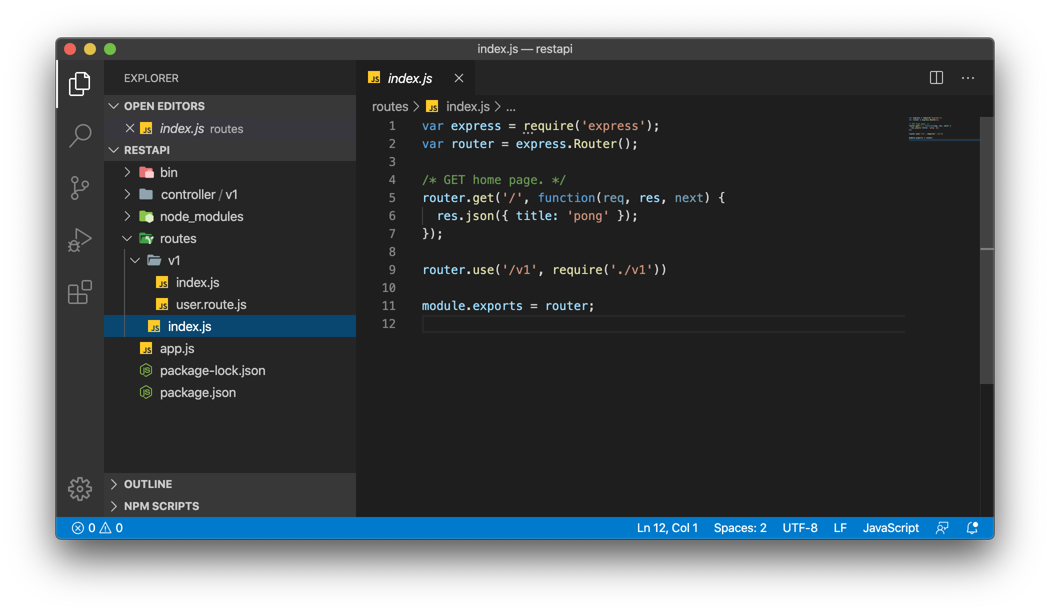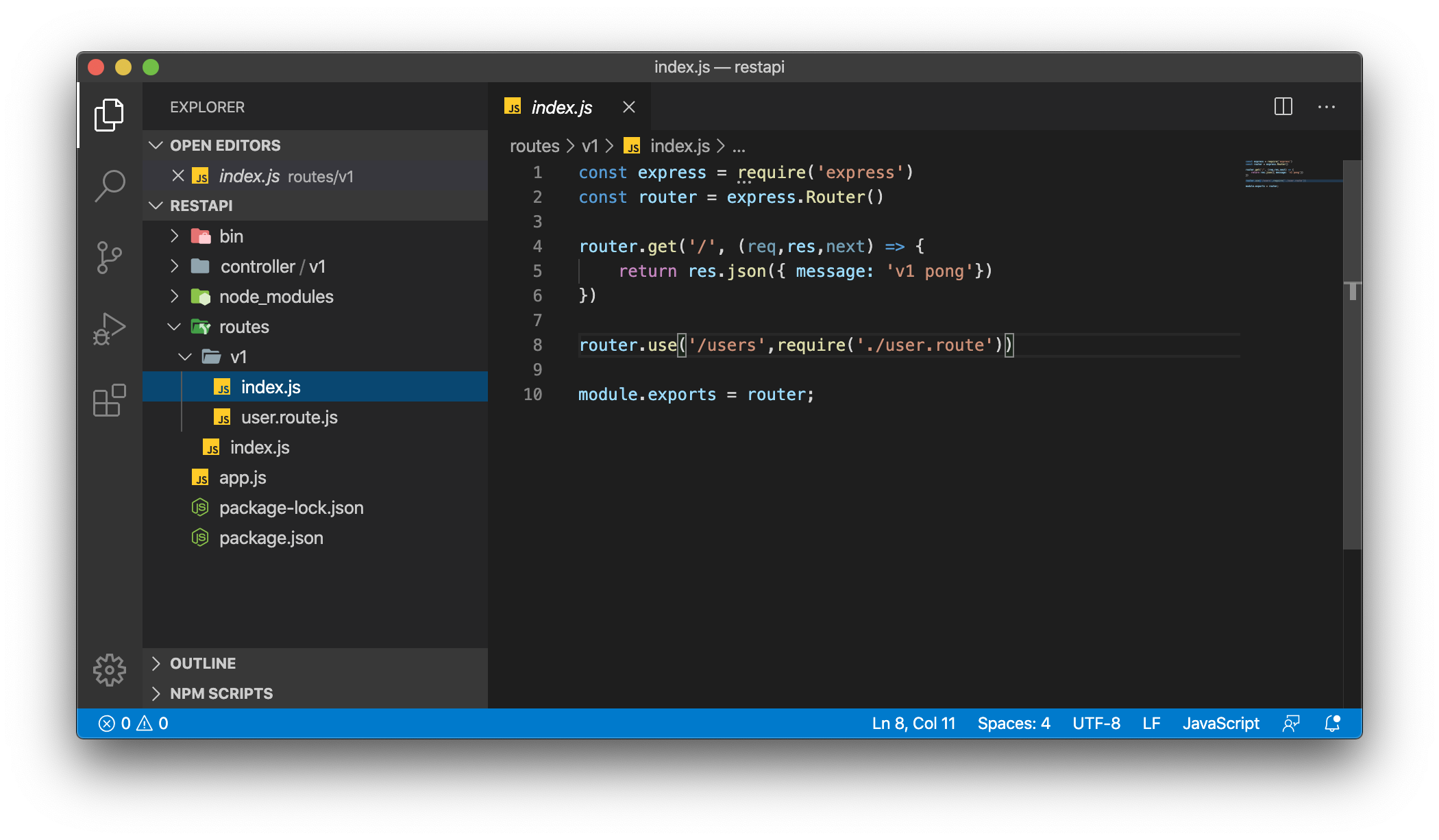 v1 폴더를 생성하고 index.js를 다음과 같이 작성해줍니다.
