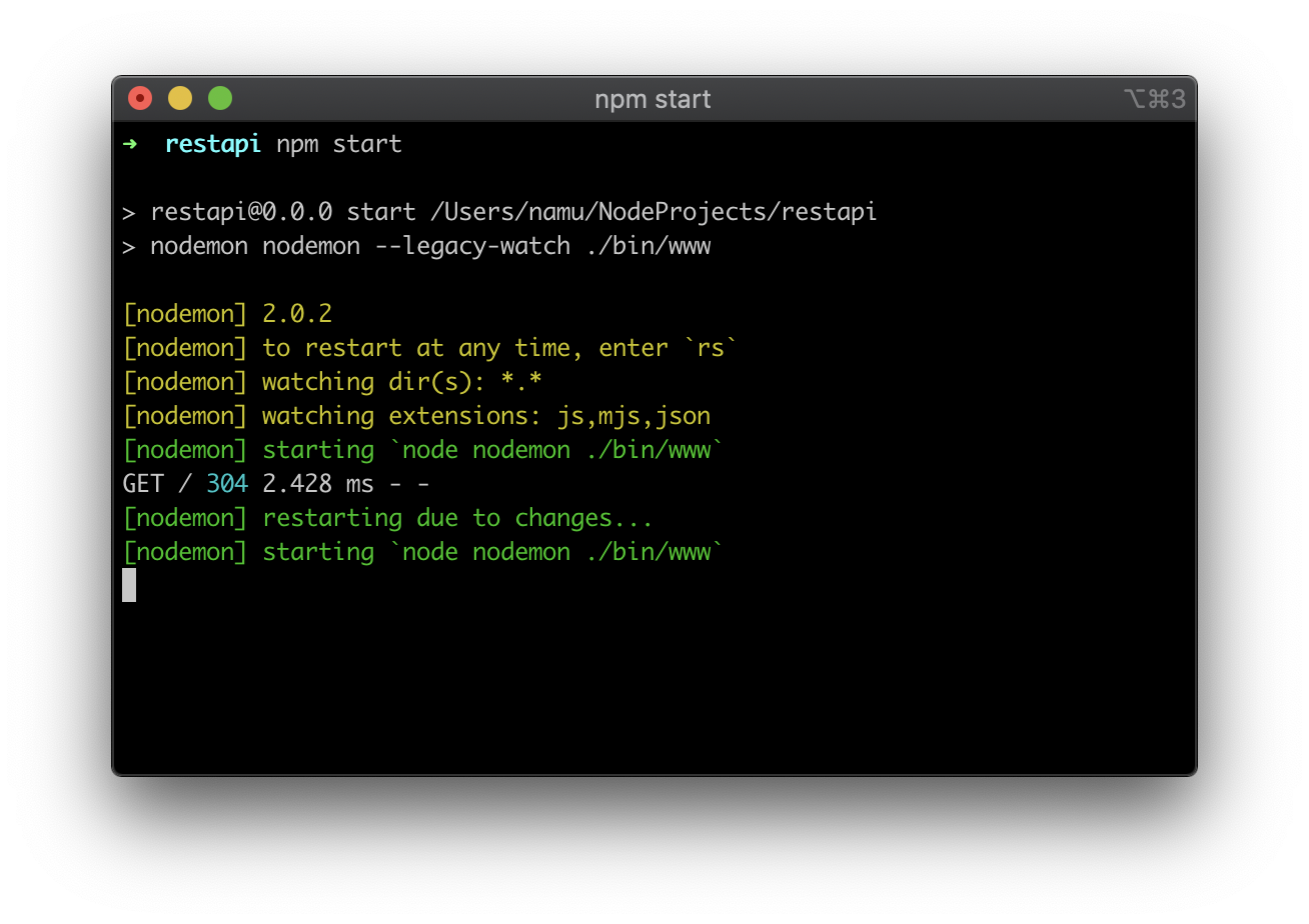 Nodemon은 해당 프로젝트의 파일을 트래킹하며 변경사항이나 어떠한 파일에서 저장이 일어났을 경우, 서버를 다시 시작 해줍니다.