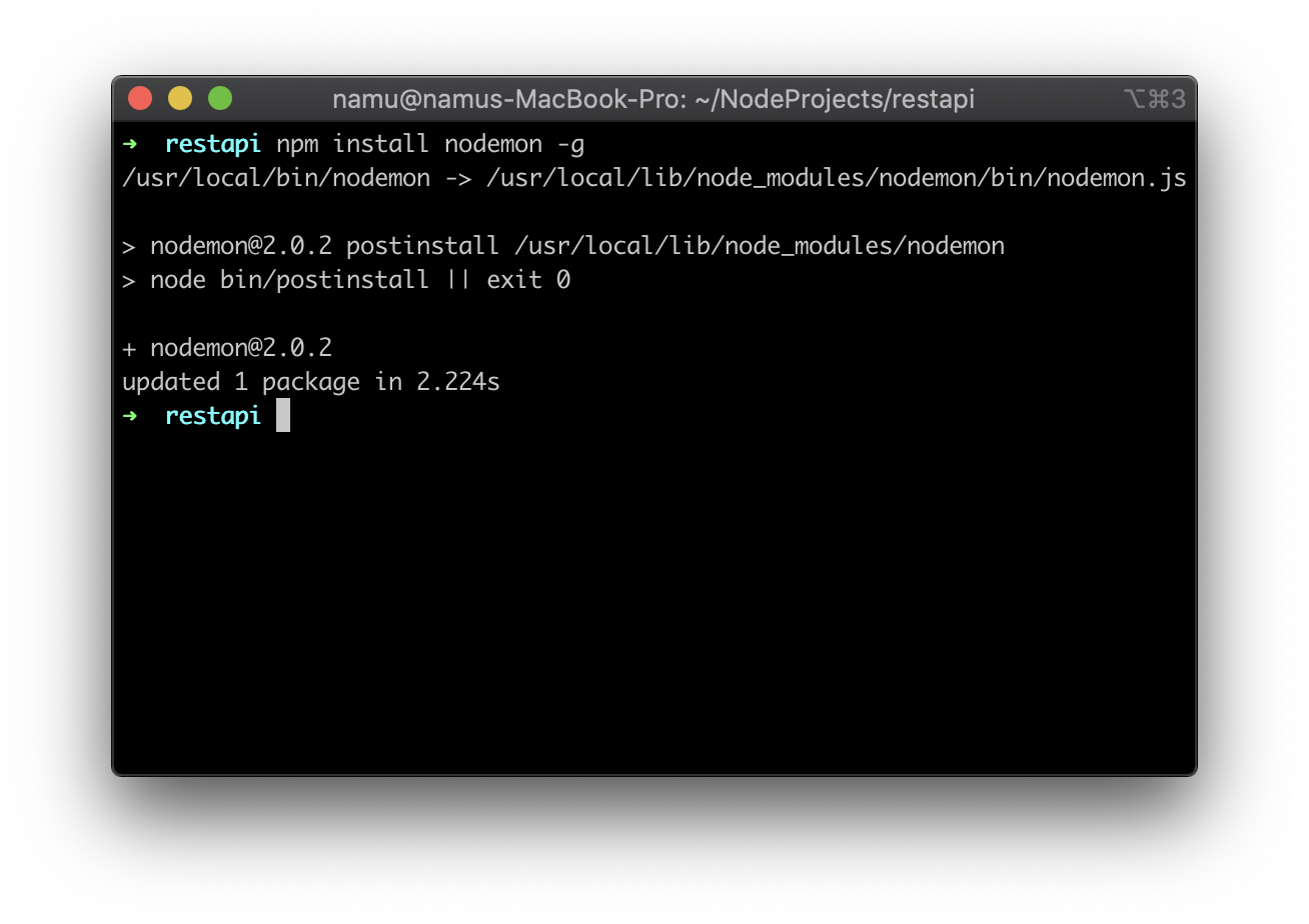 `npm install -g nodemon` 명령어를 입력해서 설치를 해주도록 합시다.