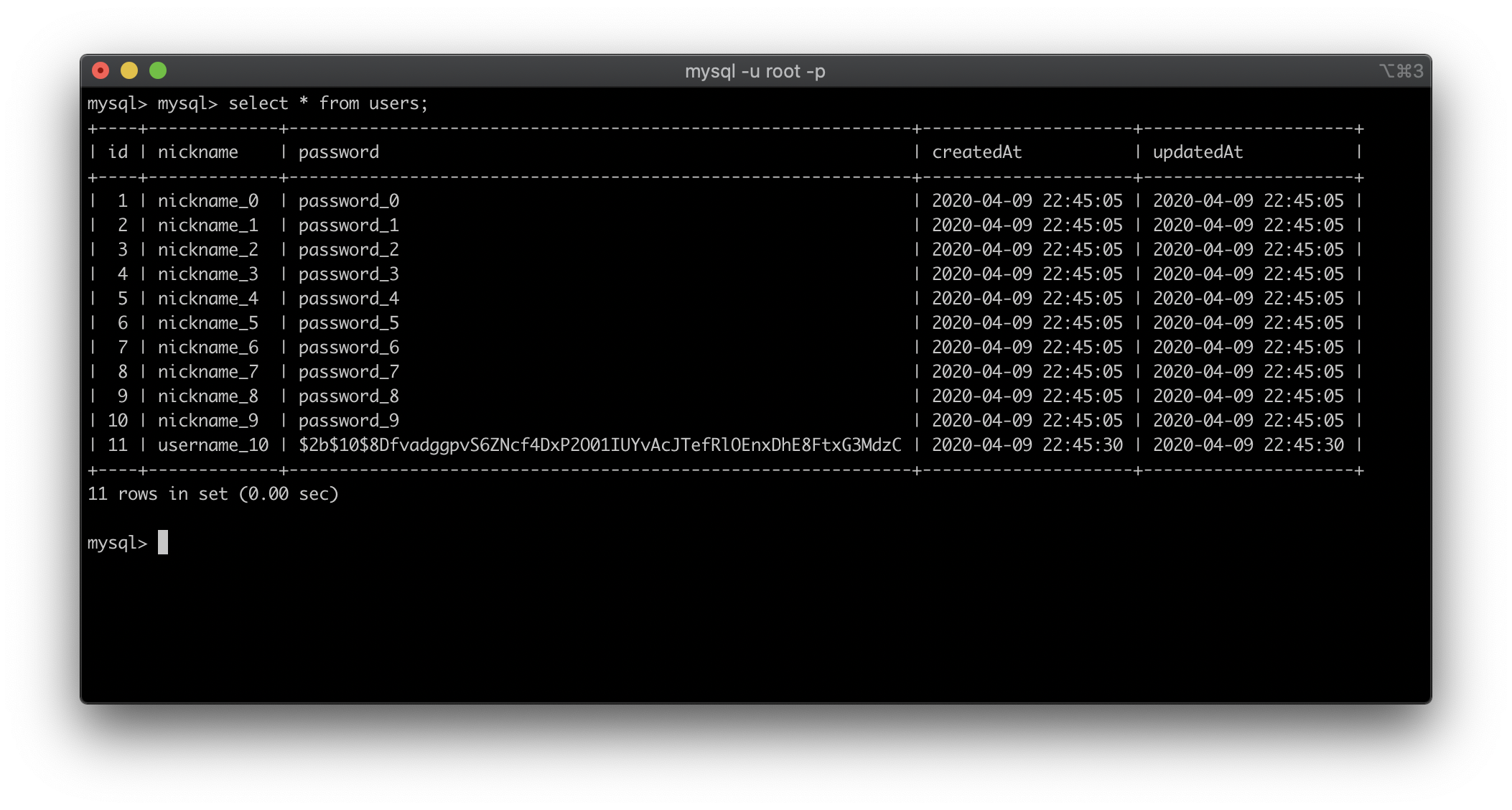 성공적으로 유저의 패스워드가 암호화되어 들어갔습니다.