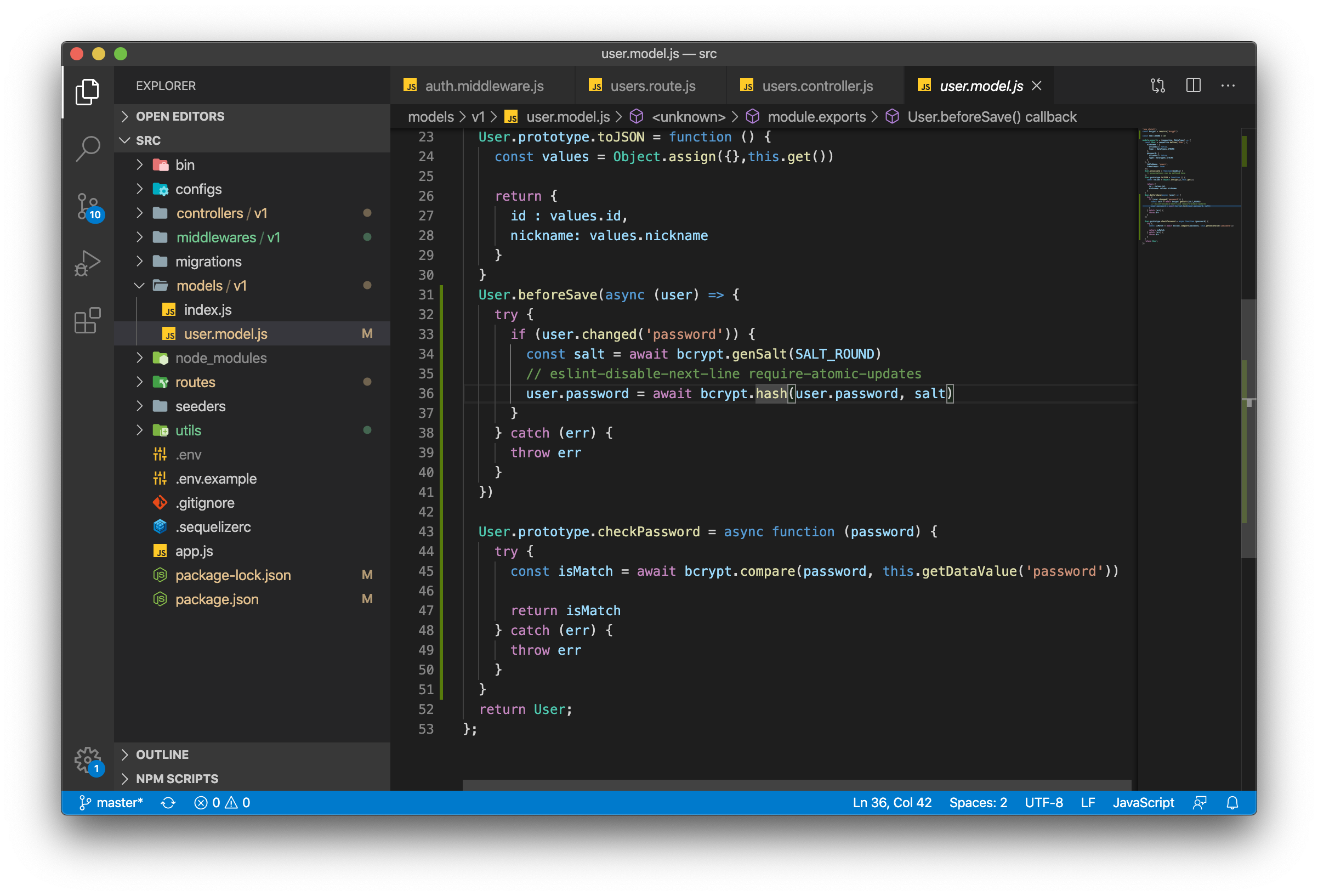 그리고 user.model.js 를 다음과 같이 수정해주도록 합시다.
