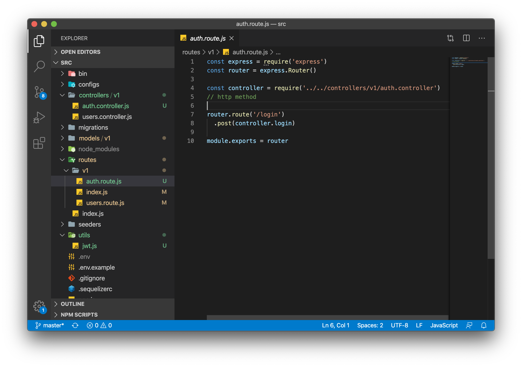 REST API 서버 만들기 (8) - UUID (0) 2020.04.12 REST API 서버 만들기 (6) - CRUD 메서드 만들기 (0) 2020.04.06 REST API 서버 만들기 (5) - Sequelize Model, Migration (0) 2020.04.01 REST API 서버 만들기 (4) - Dotenv, Sequelize 설치 및 세팅하기 (3) 2020.04.01 REST API 서버 만들기 (3) - Router 와 Controller (0) 2020.03.31