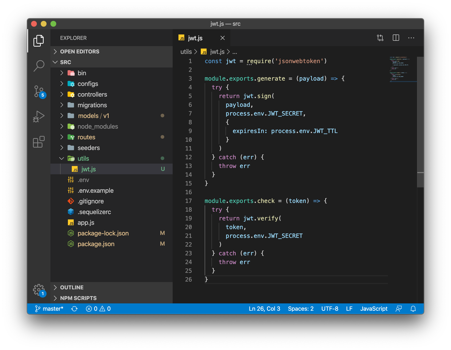 ###### ## JWT 관련 변수 ###### JWT_SECRET = someRandomString JWT_TTL = 10000이제 jwt.generate(payload) 를 하게 되면 JWT 토큰을 생성합니다.
